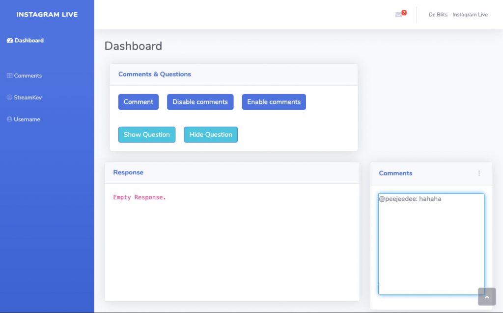 Using our Instagram API with a graphical user interface, we can go live from any device, ask questions, comments and pin comments.